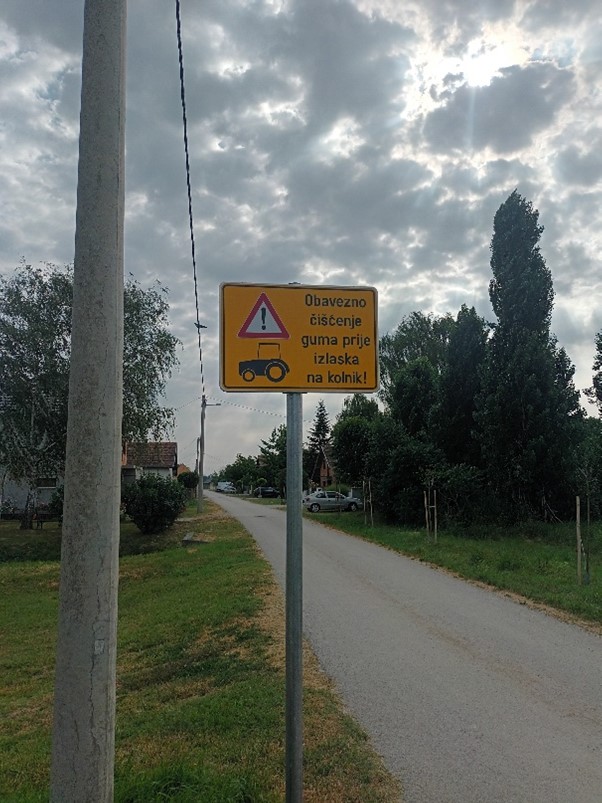 Općina Andrijaševci je postavila i znakove upozorenja unošenja blata u naselja, nismo skoloni kažnjavanju naših mještana, ali nažalost protiv pojedinaca će se morati poduzimati represivne mjere, koje su opisane u članku broj. 45., stavak 2., i 5., Zakona o sigurnosti prometa na cestama. (NN 114/22 i 133/23)