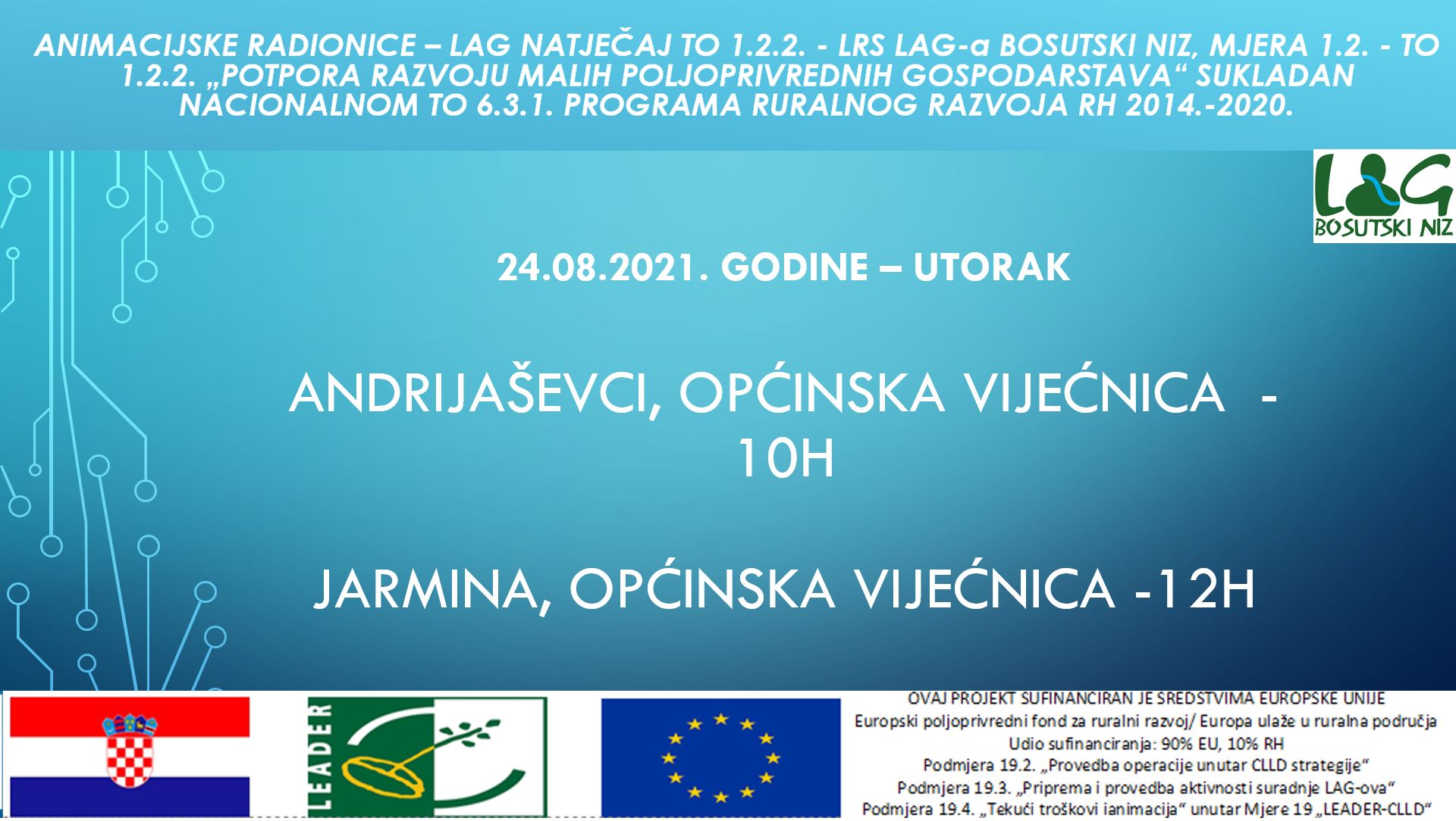 LAG BOSUTSKI NIZ dana 19.7.2021. godine raspisao je natječaj sukladan TO 6.3.1. „Potpora razvoju malih poljoprivrednih gospodarstava“ za nositelje projekata koji imaju sjedište na području LAG-a Bosutski niz.